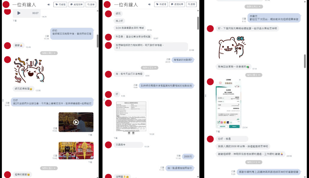 多年後,這位信眾踏入職場,面對的是另一種挑戰。他因緣際會下到澳門發展,每當有任何疑問都會透過官方Line向老師尋求協助!