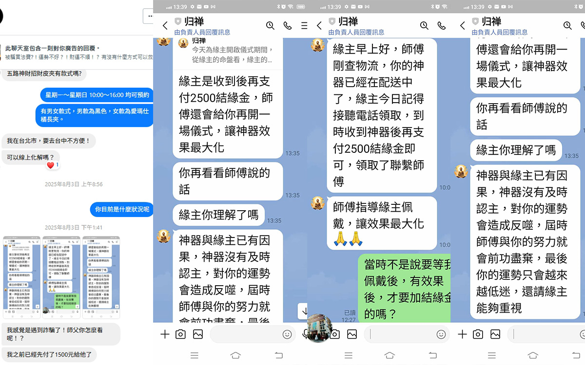 近期,來自 中國、新加坡、香港、馬來西亞 等地的詐騙團伙,假冒台灣宗教道館與廟宇,在 LineFacebook 等平台行騙。他們打著「宗教幫助」「替你改運」的名義,誘導信眾匯款購買所謂的「法寶」,但所有說辭與承諾都經不起查證。