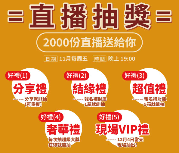 11月每週五晚間直播抽獎,連續四週、次次開獎,人人都有機會中!