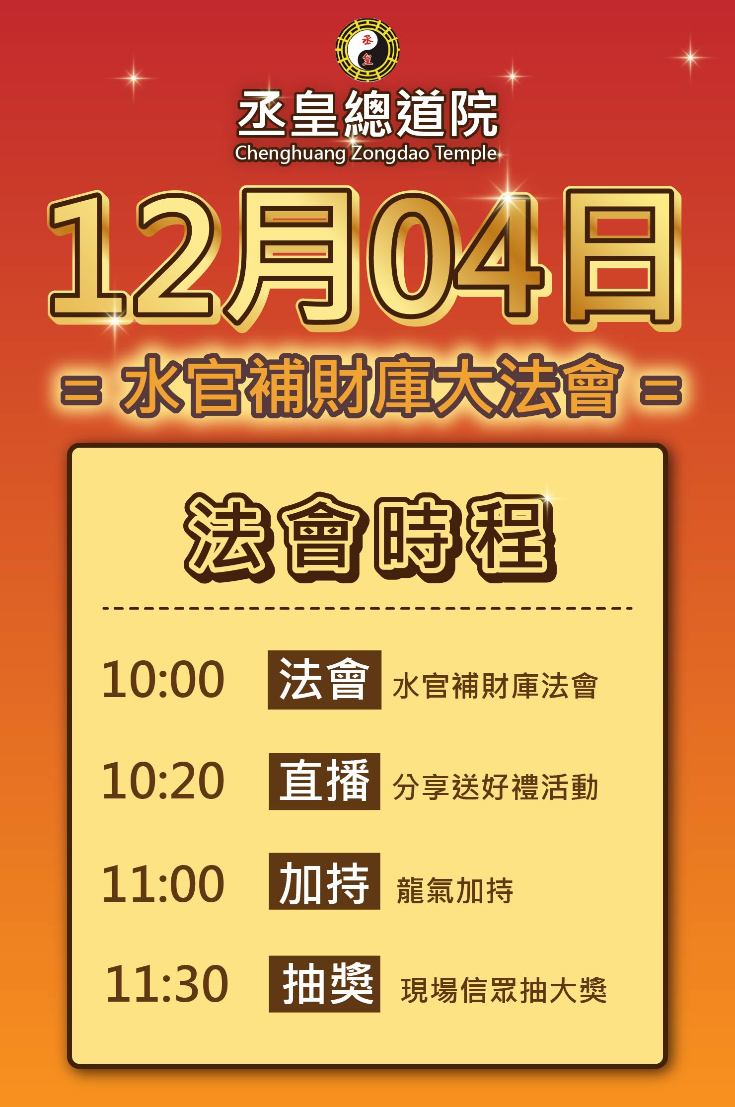📅 法會時間:國曆12月04日(四)上午10:00